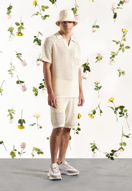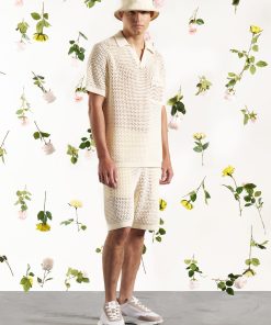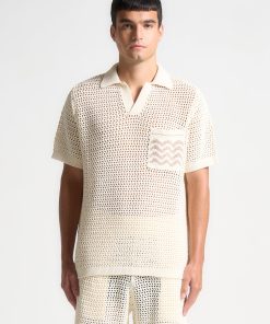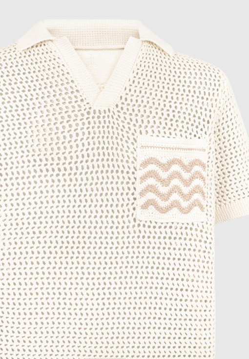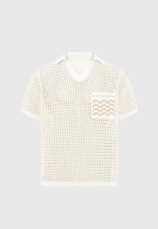 Expertly crafted from a high quality, crochet weft fabric, this Polo Shirt offers superior comfort and breathability. Its short sleeve silhouette is perfect for warm weather, while the contrast design on the front pocket adds a refined touch. Complete the look by pairing with Crochet Knit Shorts.