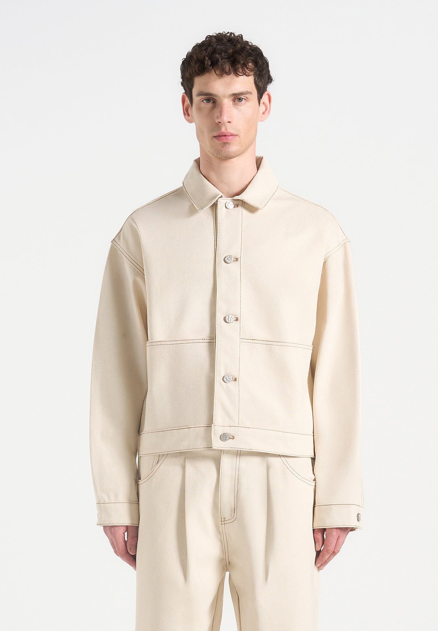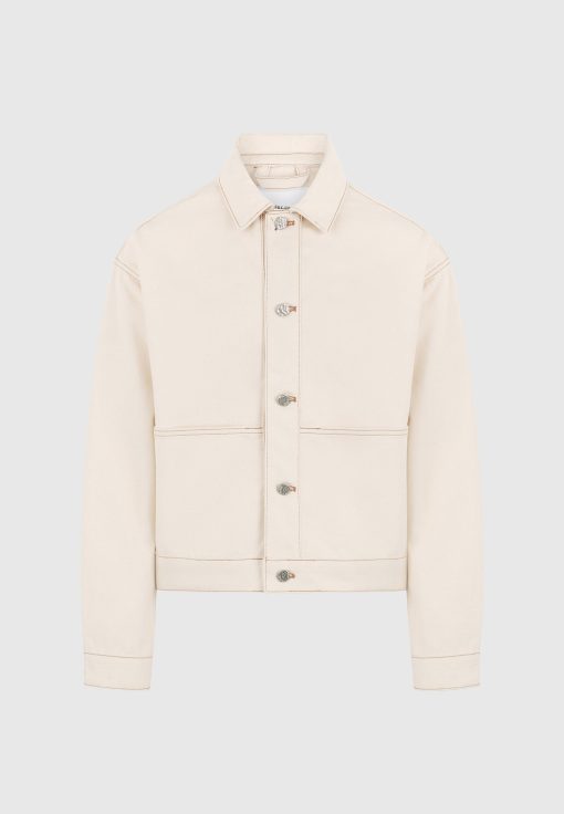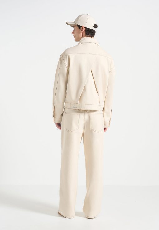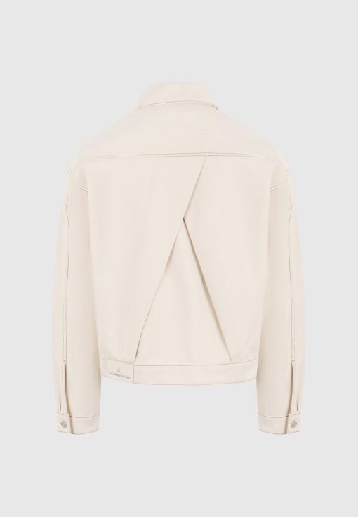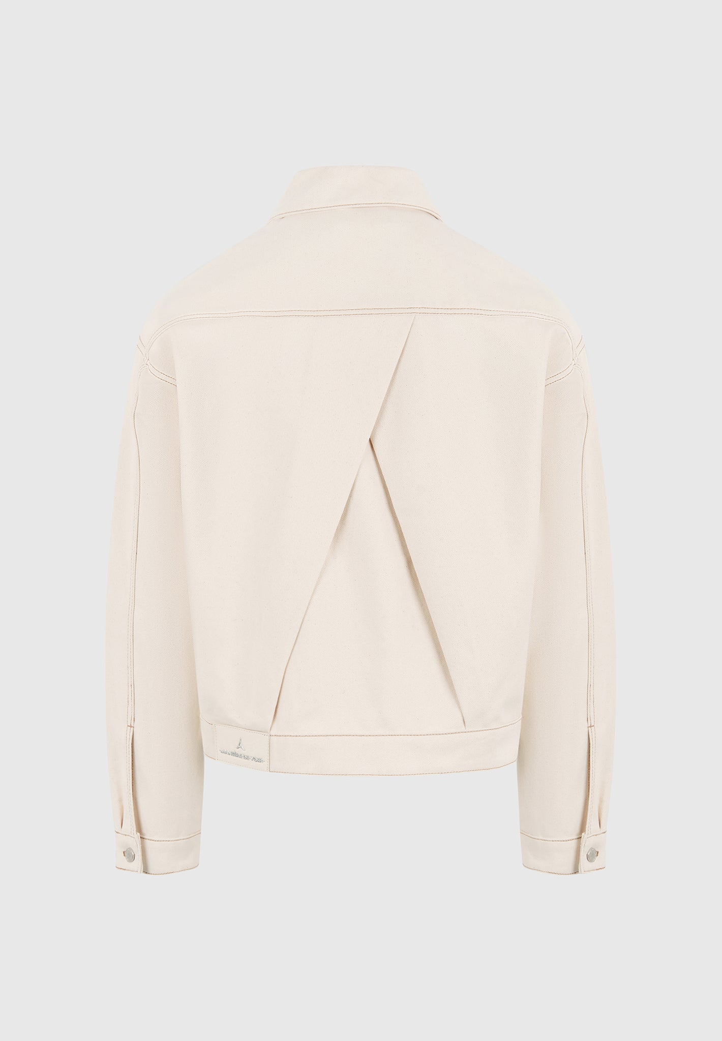 Where structure meets movement, the Denim Jacket with Back Pleat introduces a sculptural approach to outerwear. Defined by sharp triangular panelling and a deep inverted pleat at the back, this piece adds dynamic form to a traditionally rigid silhouette. Its clean lines are accentuated by contrast stitching and functional hardware, creating a bold, modern framework.