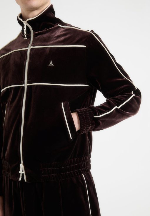 The Eiffel Velour Track Jacket blends refined style with modern appeal, crafted from plush velour for a soft, velvety feel. Contrast piping adds a sophisticated edge, while ribbed hems provide a tailored fit, delivering elevated comfort with contemporary flair.