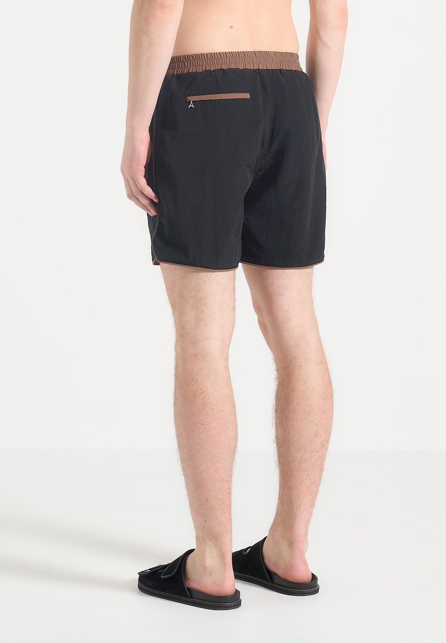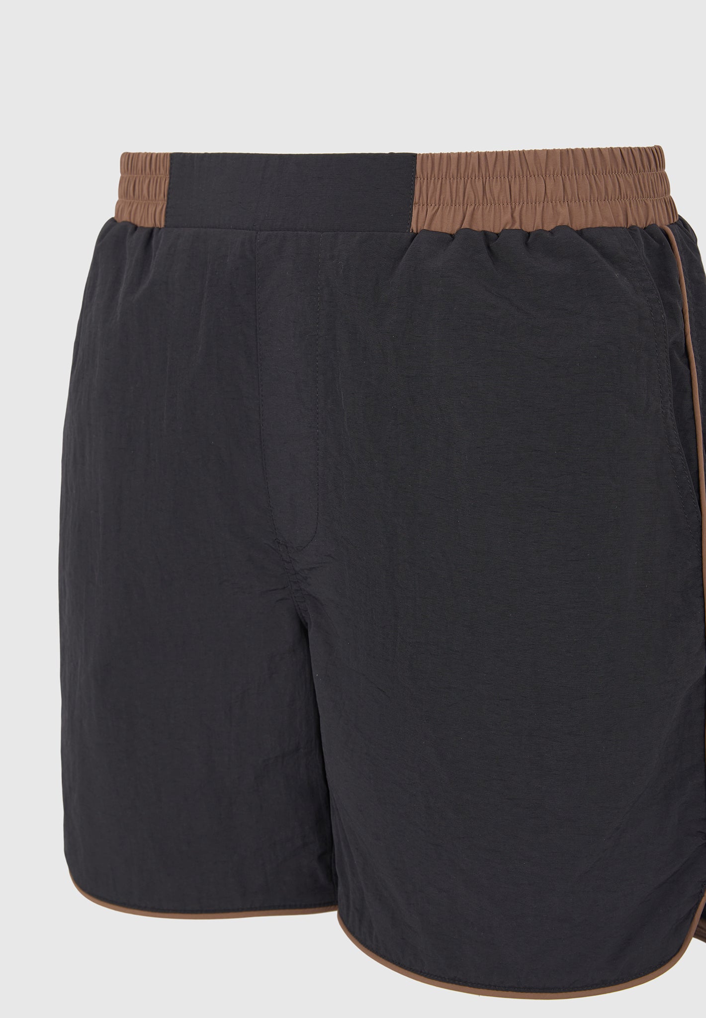 The Swim Shorts with Contrast Waist Band fuse utility with standout design, featuring a bold contrast elastic waistband that anchors the look while ensuring adaptive comfort. Designed for both poolside and street styling, the sharp piping trim reinforces the tailored shape, while the quick-dry fabrication delivers performance without compromise.
