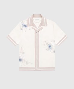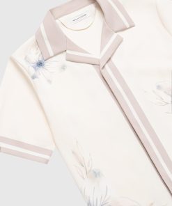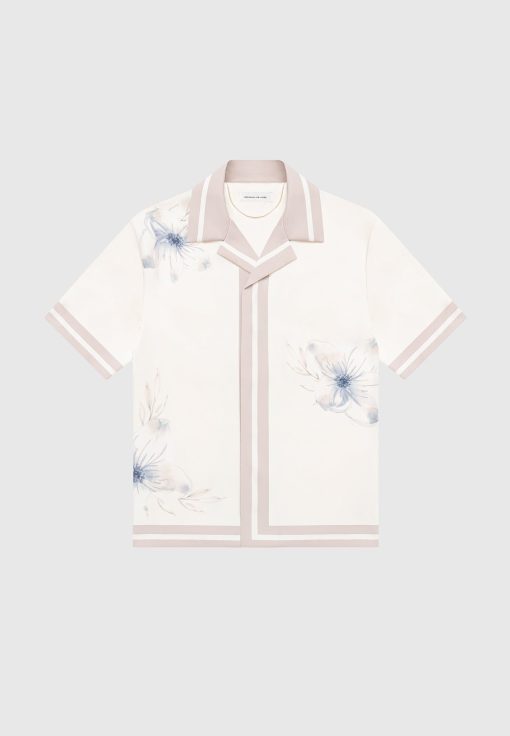 Introducing our Cream Floral Border Resort Shirt: a comfortable and versatile piece crafted from high-quality satin-finish fabric. Its subtle floral print, complemented by a contrasting collar and hem, offers a modern update to your wardrobe staples.