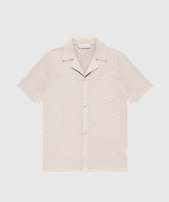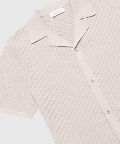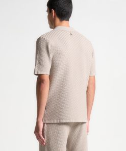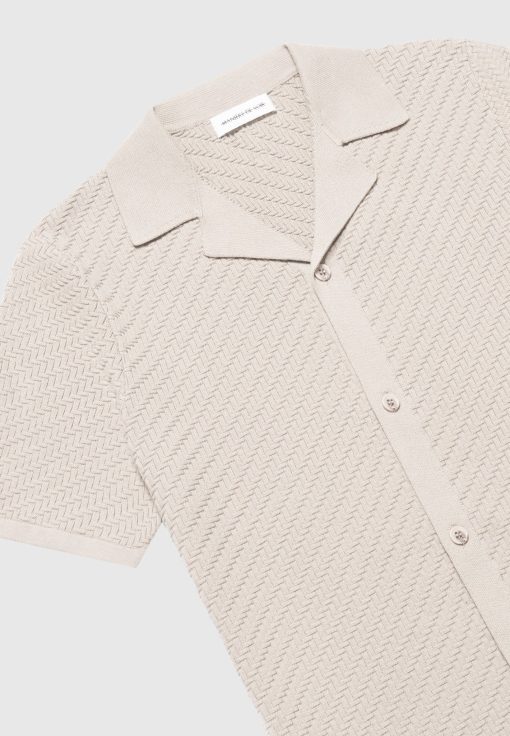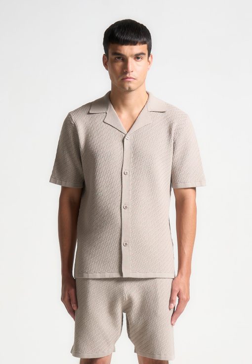 Crafted from high-quality fabrics, our Taupe Herringbone Knit Revere Shirt offers a classic, comfortable look. Featuring a revere collar and short sleeve silhouette, it pairs seamlessly with our Herringbone Knit Shorts. Enhance your wardrobe this summer with this timeless and adaptable piece.