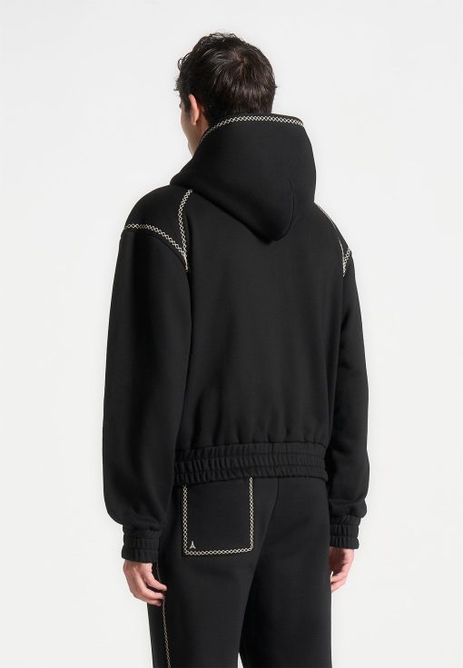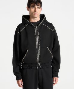 The Whipstitch Raglan Effect Zip Hoodie in Black blends refined craftsmanship with modern streetwear. Featuring unique whipstitch detailing along the raglan sleeves, it maintains a sleek, athletic silhouette. The durable metal zipper makes this hoodie perfect for layering, offering both style and performance.