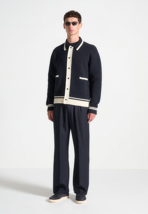 The Classic Combed Cotton Knit Cardigan in Navy redefines classic knitwear with a contemporary edge. Crafted with a long sleeve silhouette made from luxuriously soft combed cotton, this Cardigan ensures effortless comfort. Perfect for layering, this Cardigan is a versatile essential for elevating your seasonal wardrobe.