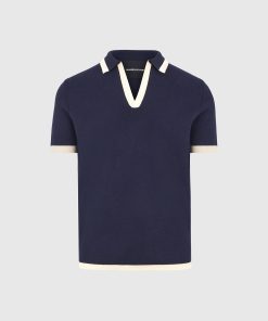 Redefining the classic polo, the Contrast Detail Knit Polo Shirt introduces bold tonal blocking and a sculpted knit texture for a refined yet athletic aesthetic. The open placket neckline adds a sleek, contemporary edge, while the contrast collar and cuffs sharpen the silhouette with intentional visual breaks—ideal for elevated everyday styling.