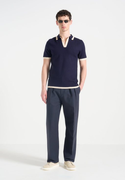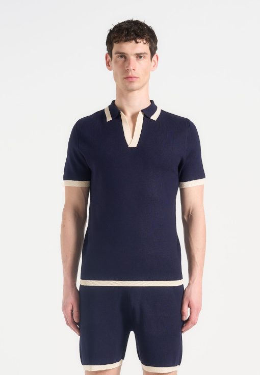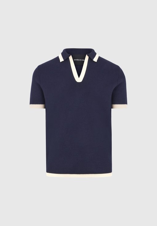 Redefining the classic polo, the Contrast Detail Knit Polo Shirt introduces bold tonal blocking and a sculpted knit texture for a refined yet athletic aesthetic. The open placket neckline adds a sleek, contemporary edge, while the contrast collar and cuffs sharpen the silhouette with intentional visual breaks—ideal for elevated everyday styling.