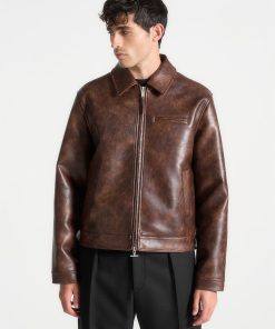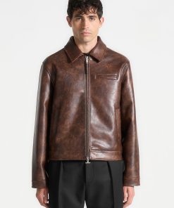 The Vintage Leather Jacket in Brown combines heritage style with top-quality craftsmanship. Made from premium vegan leather, it offers a soft, textured finish with a traditional point collar, zip front closure, and durable seams. Fully lined for warmth, it transitions effortlessly from casual to semi-formal settings, making it a timeless and refined wardrobe staple.