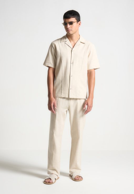 This Linen Pintuck Revere Shirt is an expertly designed shirt with a short sleeve silhouette, lightweight fabric, and pintuck detail. The revere collar adds a touch of refinement to this versatile shirt. Pair it with the Linen Pintuck Trousers or Shorts for a complete look.