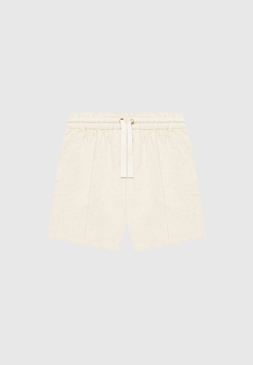 Expertly crafted from breathable linen, our Pintuck Shorts offer both comfort and style. The drawstring waistband allows for a custom fit, while the Pintuck detail adds a touch of refinement. Pair with our Linen Pintuck Revere Shirt for a complete summer ensemble.