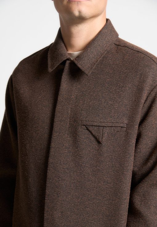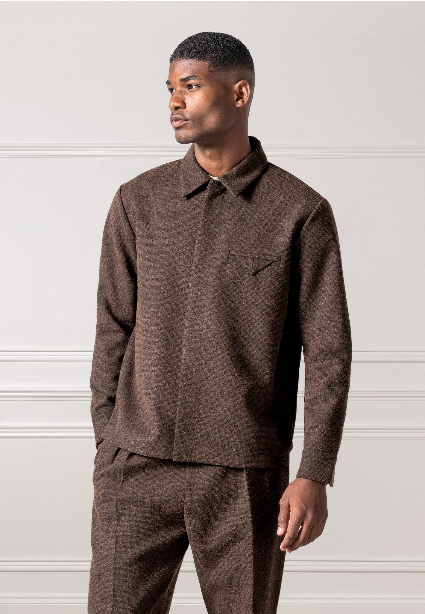 Elevate your style with the Melange Tailored Shirt in Brown, featuring a regular fit and a distinctive triangle pocket. The lightweight fabric ensures all-day comfort, while hidden cuff buttons add to its sleek design. Crafted from a premium blend of 93% polyester and 7% rayon, this Shirt offers durability and comfort. Finished with subtle embroidered Eiffel branding, it’s perfect for both casual and formal occasions.