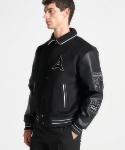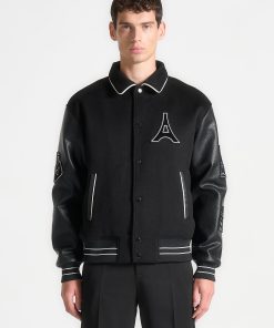 Manière De Voir Men’s Oscar – Mona Lisa Wool Blend Varsity Jacket – Black | Black