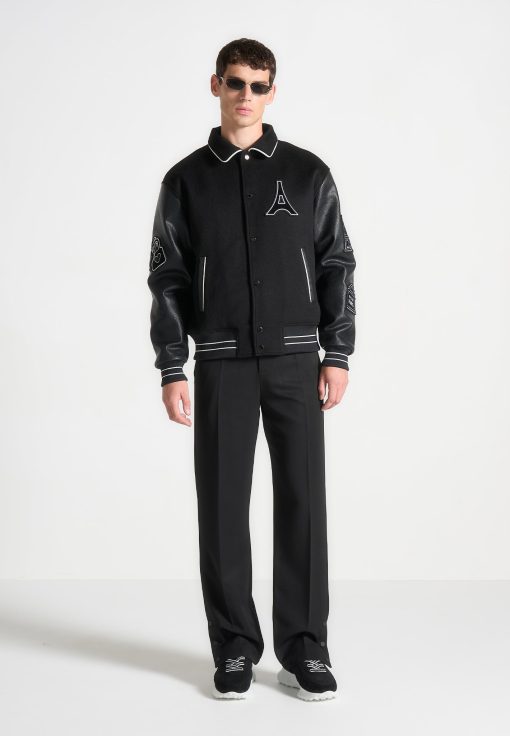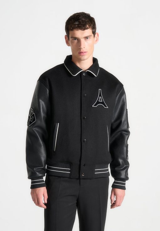 Manière De Voir Men’s Oscar – Mona Lisa Wool Blend Varsity Jacket – Black | Black