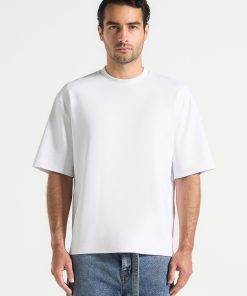 - Ribbed crew neckline for subtle shape retention