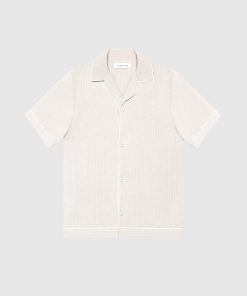 This Beige Pinstripe Revere Shirt is a must-have addition to your wardrobe. With classic pinstripe detailing and a timeless revere collar, this shirt brings style to any look. Pair it with our Pinstripe Shorts for an effortlessly put-together outfit.