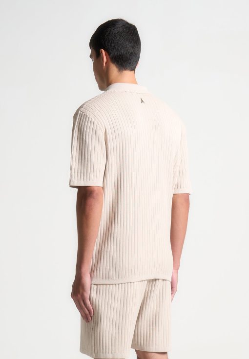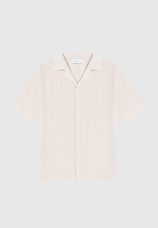 Crafted from a soft and durable knit material, the Ribbed Knit Revere Shirt offers comfort and style. The ribbed fabric adds texture while the short sleeve silhouette and revere collar create a classic yet modern look. Perfect for any occasion, this shirt is a must-have for your wardrobe.