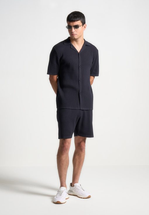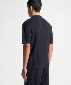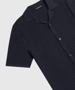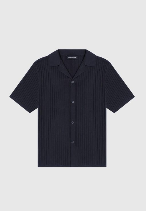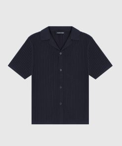 Crafted from a soft and durable knit material, the Ribbed Knit Revere Shirt offers comfort and style. The ribbed fabric adds texture while the short sleeve silhouette and revere collar create a classic yet modern look. Perfect for any occasion, this shirt is a must-have for your wardrobe.