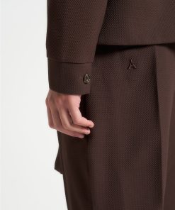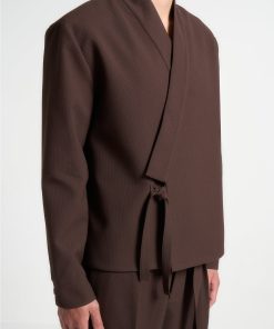 Introducing the Textured Kimono Wrap Jacket in Brown, a standout addition to any wardrobe. Its distinctive textured material lends an air of refinement, while the self-tie fastening at the waist ensures a flattering silhouette. Featuring a V-neck collar and long sleeves, this Jacket is the perfect choice for any occasion.