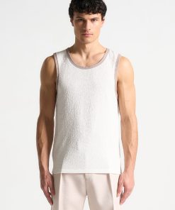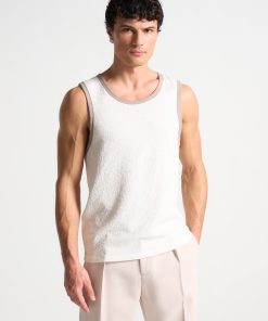 Crafted from a textured fabric, this Seersucker Vest in classic White and Beige delivers a touch of sophistication. The relaxed fit and sleeveless silhouette add a casual yet polished style, while the contrast lining provides an eye-catching detail. Perfect for any occasion, this versatile vest is a must-have for your wardrobe.