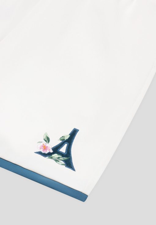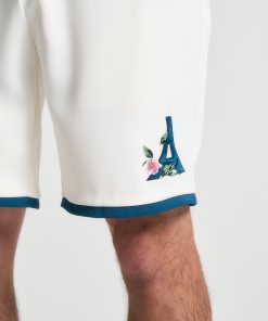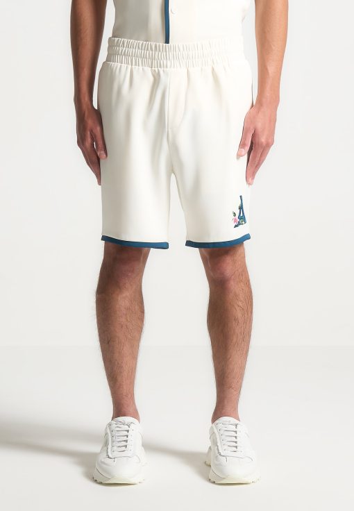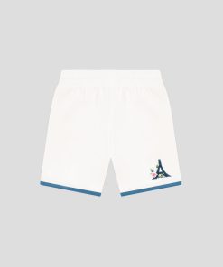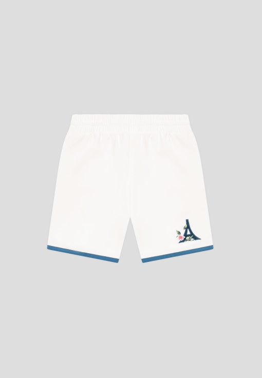 Experience the ultimate blend of luxury and comfort with our Velvet Eiffel Shorts in Cream and Blue. Crafted with a soft satin feel and adorned with statement Velvet Eiffel appliqué, these shorts are perfect for any occasion.
