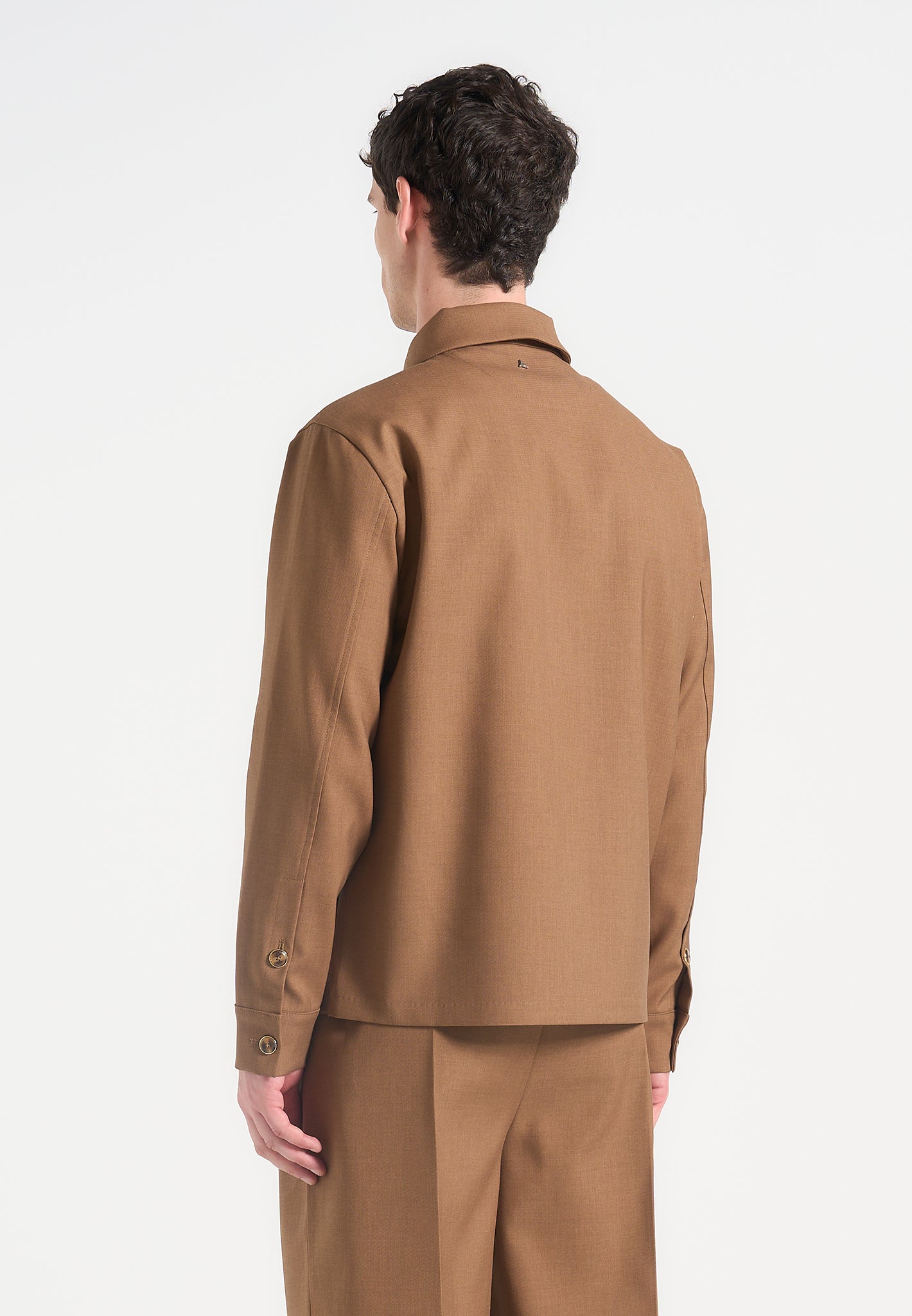 The Tailored Overshirt is designed with an engineered sleeve construction that enhances natural movement while maintaining a clean, tailored silhouette. A precision-cut straight hem and extended cuff detailing set it apart, while its tightly woven fabric delivers a structured finish that elevates it beyond the typical overshirt.