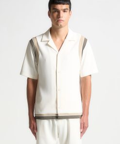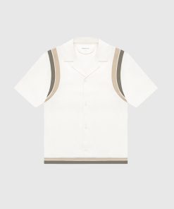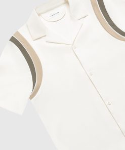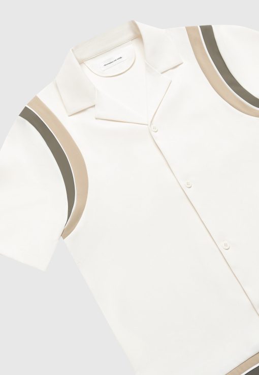 Introducing our Varsity Revere Shirt, featuring contrasting fabric in the shoulder seam and hem for an added unique touch. With its relaxed fit and classic revere collar, this shirt offers both comfort and timeless appeal. Embrace effortless style and versatility with this essential addition to your wardrobe.