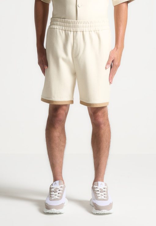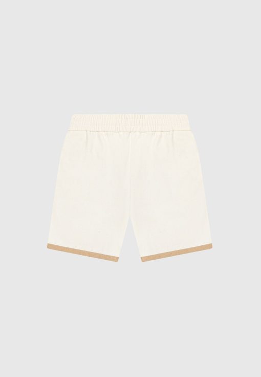 These Wool Shorts are crafted from high quality fabrics, ensuring durability and comfort. The contrast hem adds a touch of style, while the elasticated waistband provides a perfect fit. Pair them with our Boxy Wool Revere Shirt for a complete and polished look.