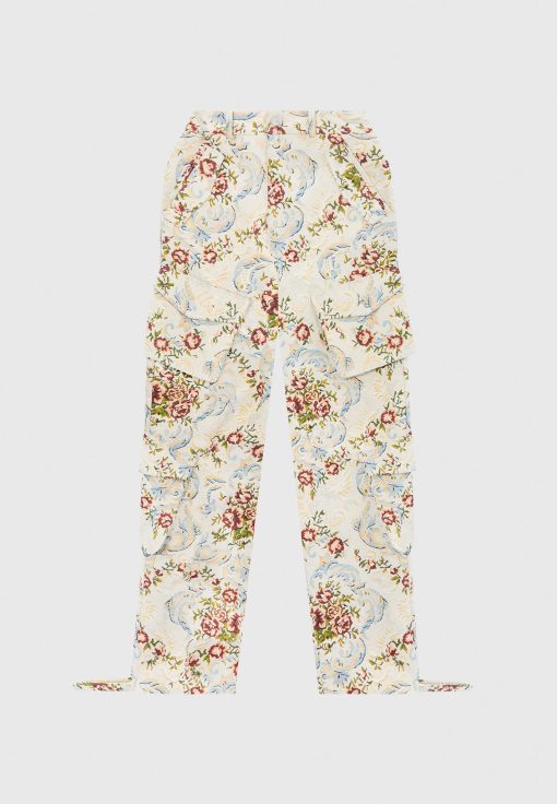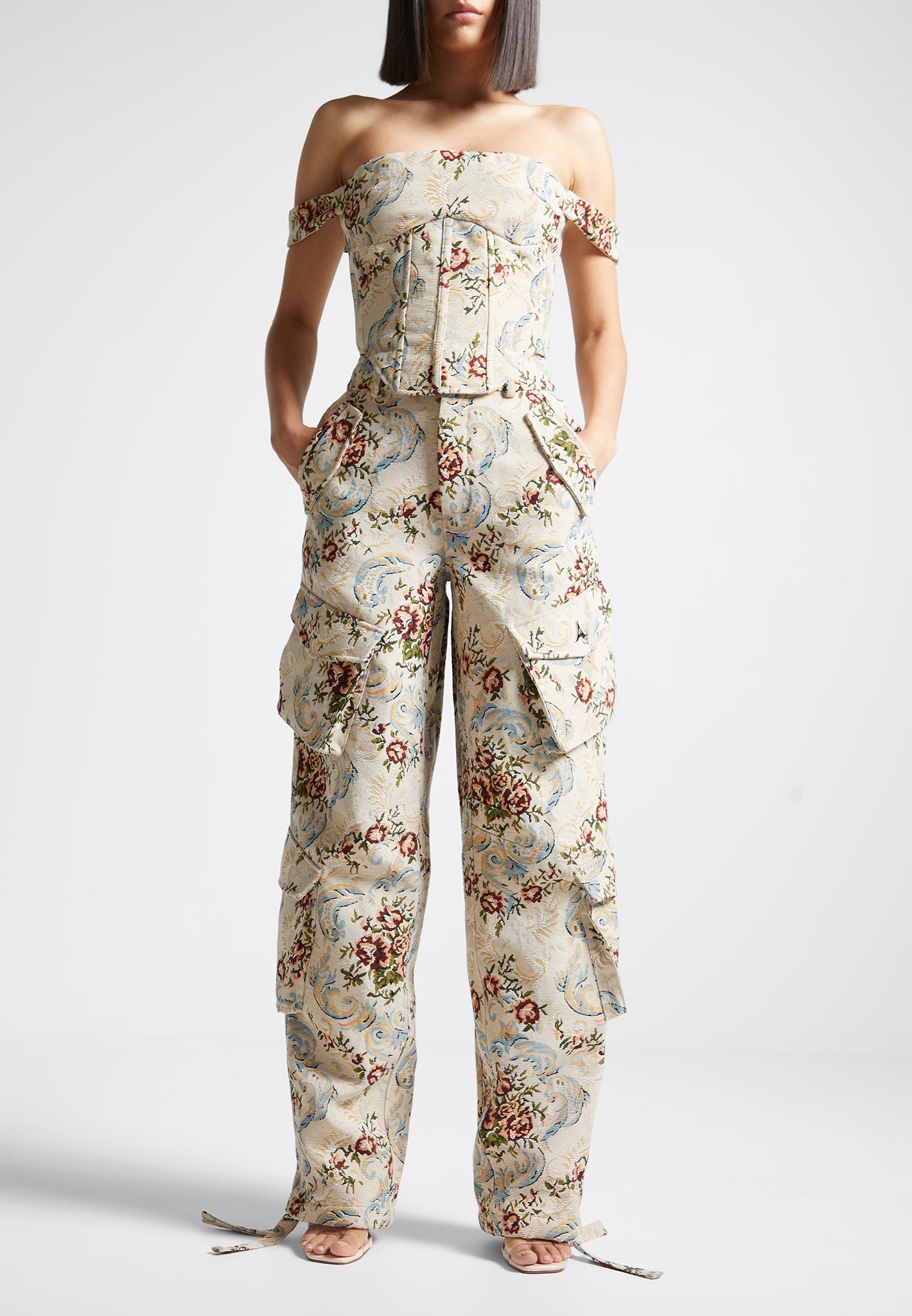 Introducing our Floral Jacquard High Waisted Cargo Pants. Crafted with floral jacquard fabric, they feature 3D cargo pockets for a trendy and comfortable fit. Perfect for a casual yet on trend look.