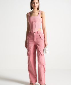 Manière De Voir Women’s Anne – High Waisted Cargo Pants – Washed Pink | Pink