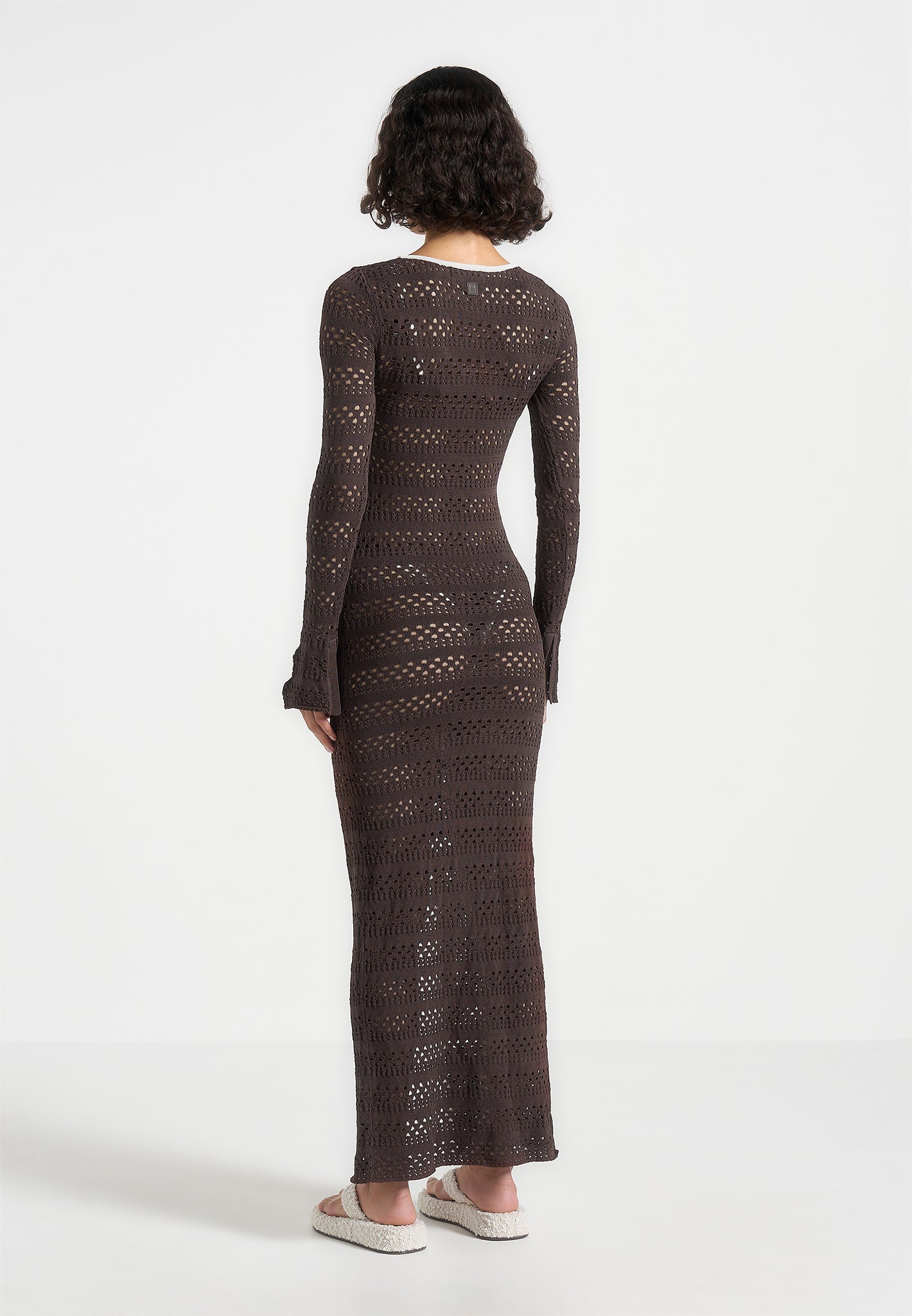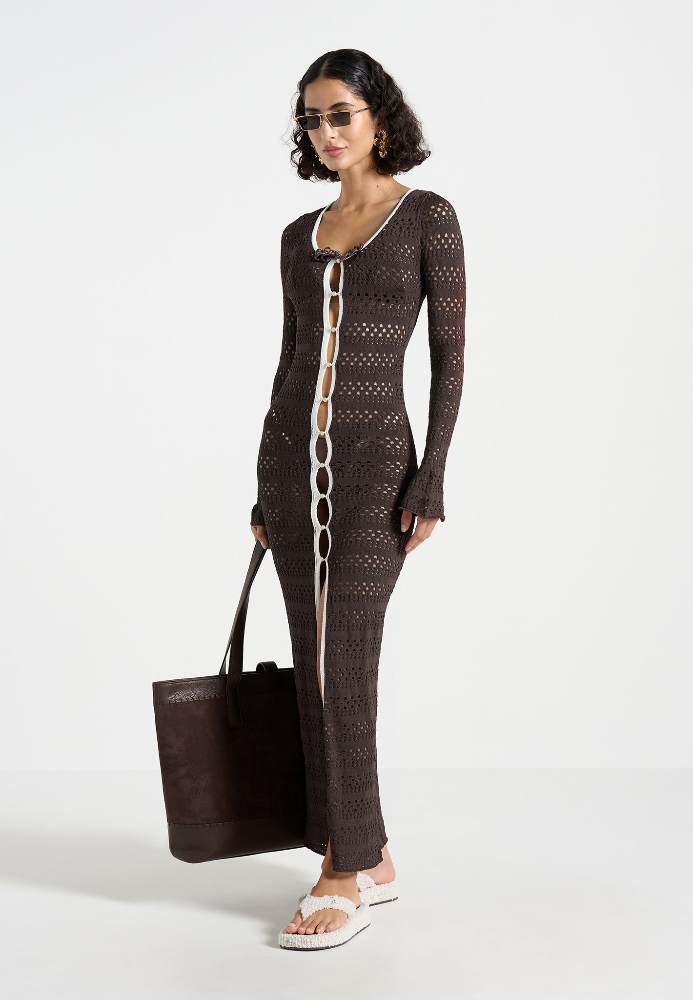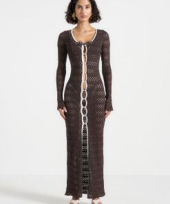 Manière De Voir Women’s Aria – Pointelle Knit Cover Up – Brown/cream | Brown