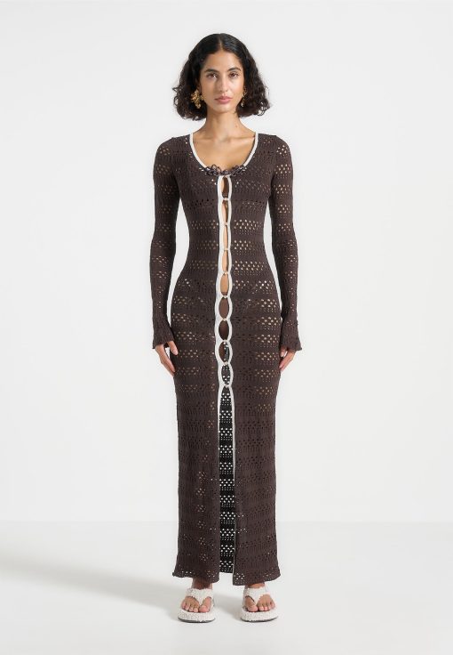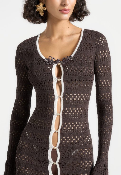 Manière De Voir Women’s Aria – Pointelle Knit Cover Up – Brown/cream | Brown