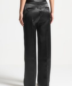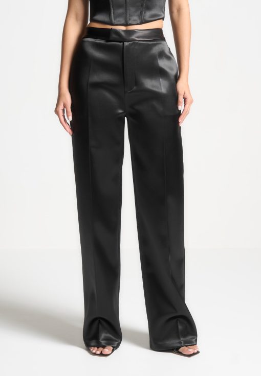 Expertly tailored for a sleek fit, these Satin Tailored Trousers provide ultimate comfort with stretch fabric and an adjustable waistband. Ideal for formal and special occasions, these trousers offer a sophisticated and luxurious look