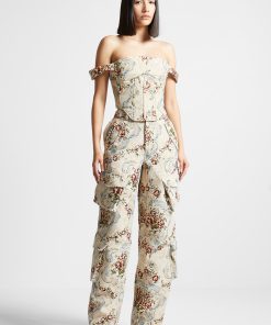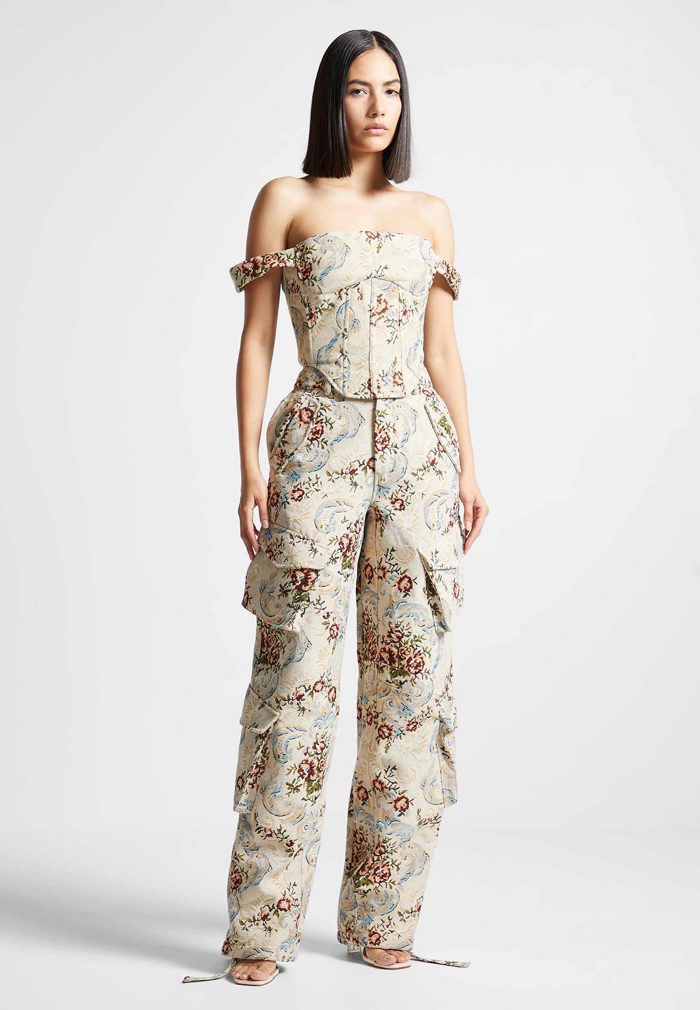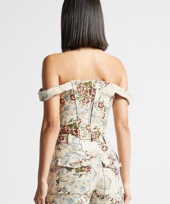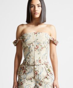 This Floral Jacquard Bardot Corset Top is the perfect way to stand out in style. Its elegant design features supportive corsetry to create a structured silhouette, allowing you to make a statement in any outfit.