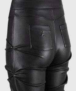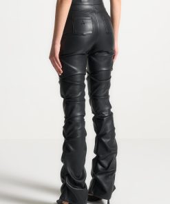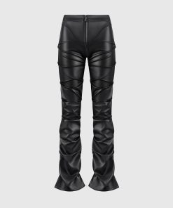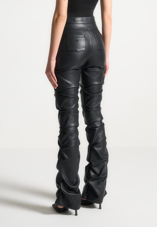 Introducing our classic Vegan Leather Flared Trousers. Featuring tacked detailing and a front functional zip, these trousers will elevate any outfit. Dress them up or down for any occasion. Made from high-quality vegan leather for a stylish and ethically conscious look.