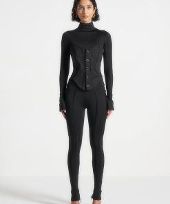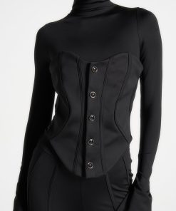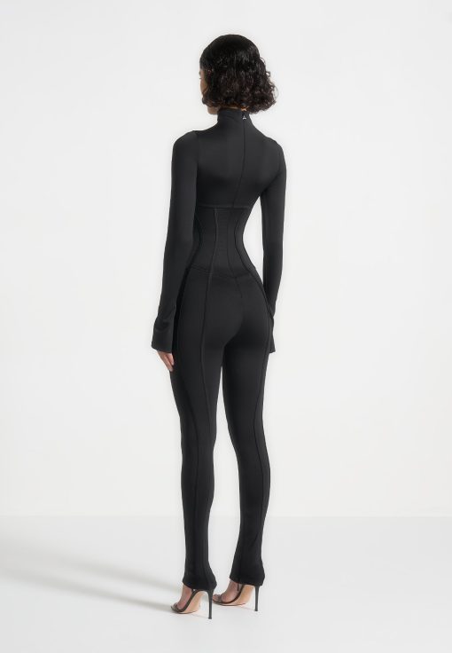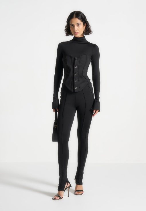 Manière De Voir Women’s Contour Jumpsuit With Buttoned Corset – Black
