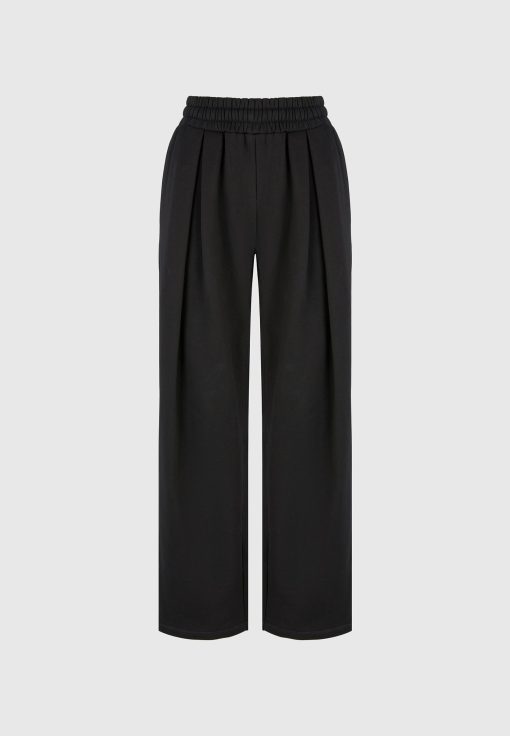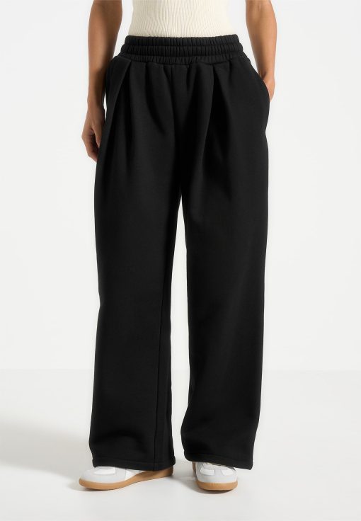 These wide-leg joggers offer a refined take on loungewear with tailored details and elevated volume. Crafted from soft, heavyweight cotton-blend fleece, they feature deep front pleats that enhance the silhouette while maintaining ease and movement. The elasticated waistband ensures a comfortable fit, and the welt back pocket adds a subtle utilitarian finish. Designed to sit high on the waist, they balance softness with structure for everyday wear that feels considered.