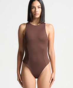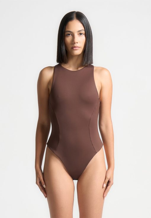 Manière De Voir Women’s Core Collection Inès – Double Layer Racer Neck Bodysuit – Brown | Brown
