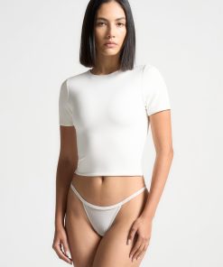 The Éternelle Short Sleeve T-Shirt is the perfect addition to your wardrobe. Featuring a crop top silhouette with a fitted crew neck, this t-shirt is sure to provide you with a flattering and comfortable fit.