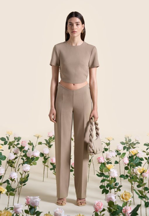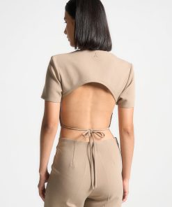 Effortlessly elevate your style with our Curved Hem Backless Top with Tie. Featuring a subtle curved back and self-tie at the back, this sophisticated top adds a touch of elegance to any outfit. Expertly crafted for a sleek and polished look.