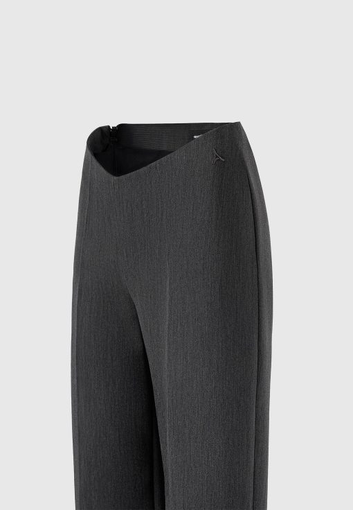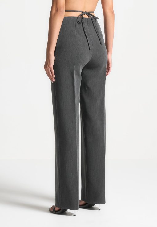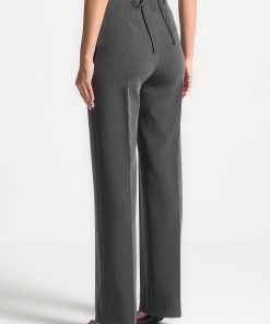 These Curved Waist Tailored Trousers in dark grey are perfect for both a dressed up or smart casual look. Featuring crease detailing for a tailored look and a curved waistband for added style, these trousers are versatile and chic; a must-have for any wardrobe.