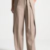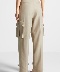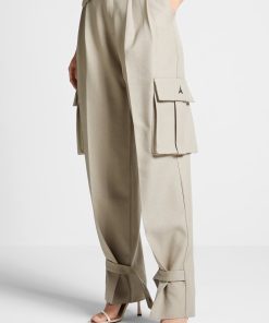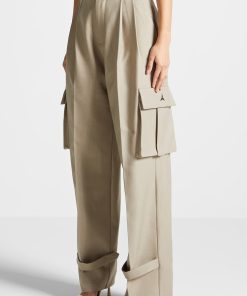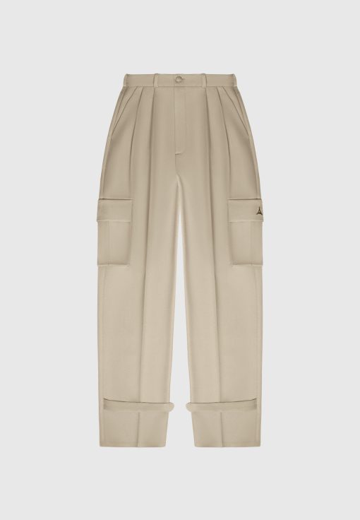 Our Tailored Pleated Cargo Trousers, crafted in beige, feature a tailored fit for a sleek silhouette, as well as cargo features for enhanced utility. The trousers have a wide-leg cut that is perfect for an effortless look.