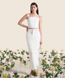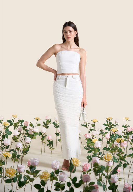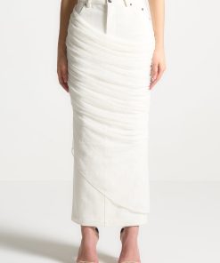 Manière De Voir Women’s Draped Mesh Denim Maxi Skirt – Off White | Off White