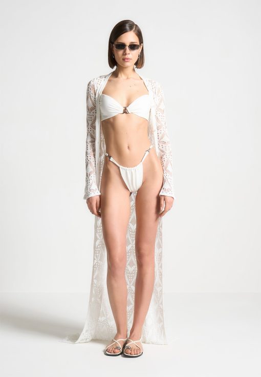Expertly designed with adjustable straps and ruched detailing, the Eiffel Ruched Bikini Top is a must-have for any beach day. Featuring elegant Silver Manière De Voir hardware, this top offers both style and functionality. Perfect for a confident, effortless look.