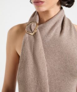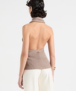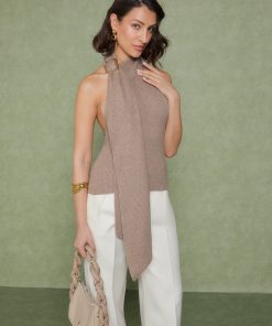 The Knitted Draped Halterneck Top is expertly crafted from soft-touch, non-itch yarn, offering both comfort and elegance. The design features a refined wrap-around drape and a high-quality metal adjuster for an elevated look.