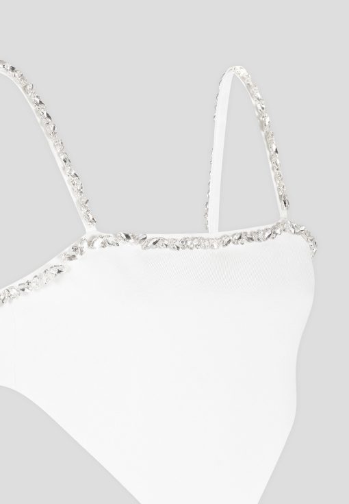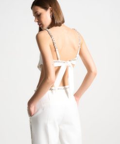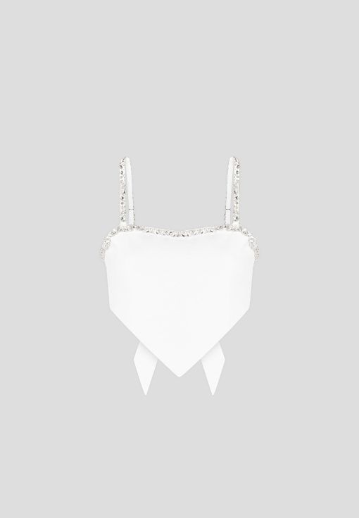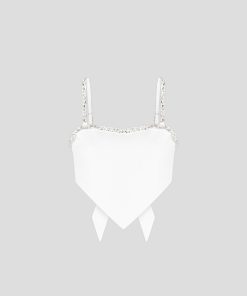 Enhance your wardrobe with our Embellished Strap Handkerchief Top. The glamorous detailing adds a touch of elegance, while the self tie at the back allows for a customisable fit. Enjoy the added convenience of adjustable straps for ultimate comfort and style.