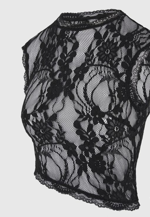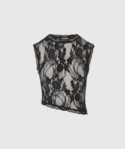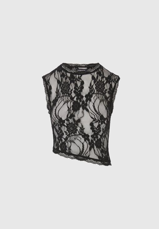 Delicate yet defined, this sleeveless lace top brings a romantic sensibility to contemporary dressing. Crafted from sheer floral lace, it features scalloped edging, a high neckline, and a form-fitting silhouette that enhances its feminine shape. The opaque bandeau lining offers just enough coverage while allowing the intricate pattern to take centre stage. Perfect for layering under tailoring or styled solo for a bold, elegant statement.