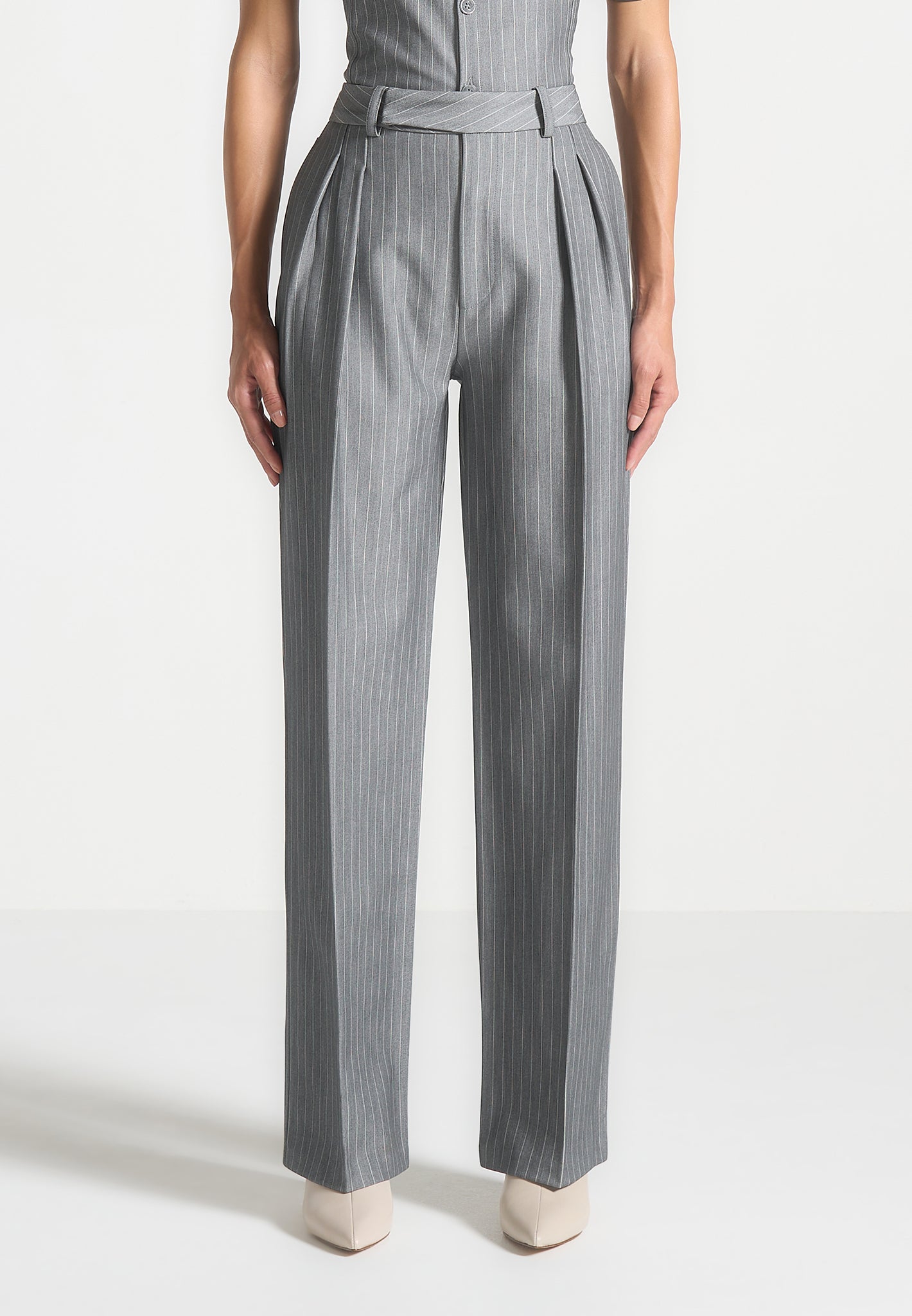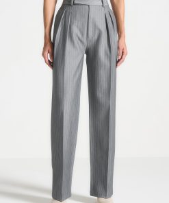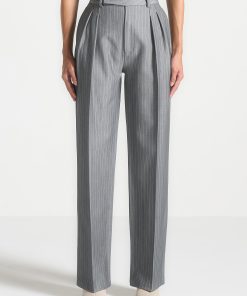 Experience classic style and versatility with our Pinstripe Twin Pleat Tailored Trousers. The straight leg fit and pleat detail give a polished, tailored look, perfect for any occasion from day to night.