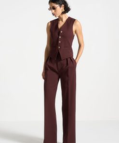 These trousers feature twin pleats and a straight leg, creating a relaxed and comfortable fit. The straight leg fit and pleat detail give a polished, tailored look, perfect for any occasion from day to night. The mid-rise waist flatters the figure creating a classic and timeless look.