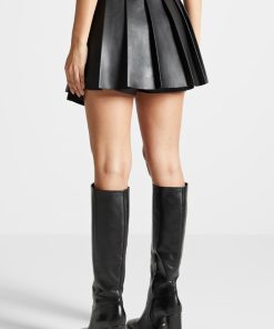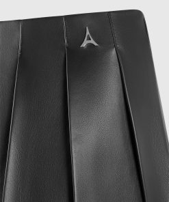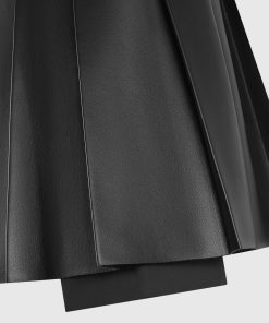This timeless black Vegan Leather Skort combines fashion and function, with its pleated design and concealed shorts, making it perfect for any occasion.
