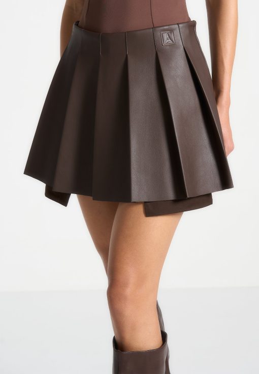 This timeless Vegan Leather Skort combines fashion and function, with its pleated design and concealed shorts, making it perfect for any occasion.