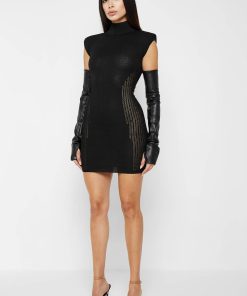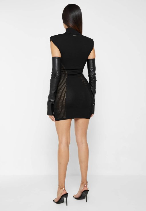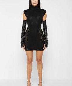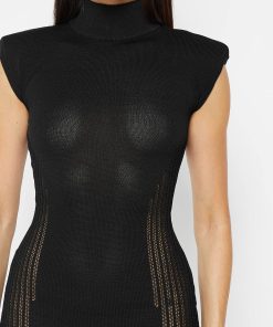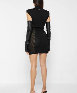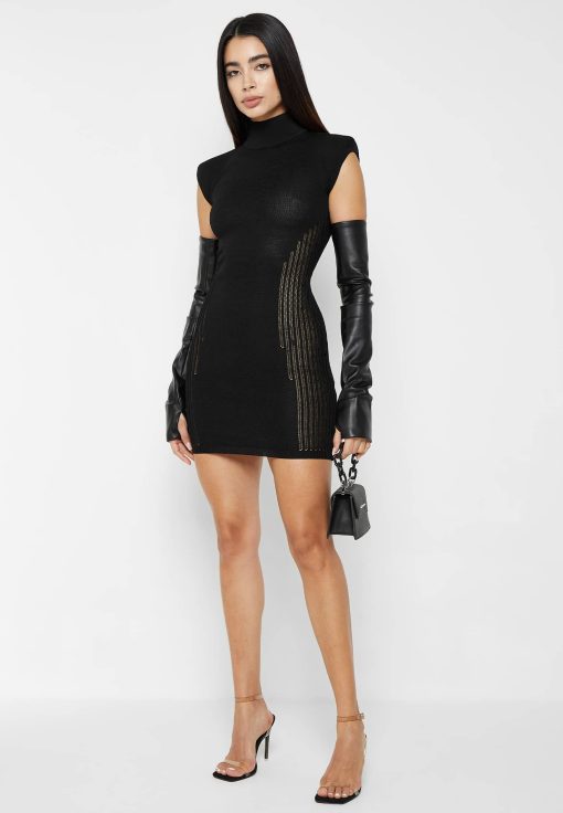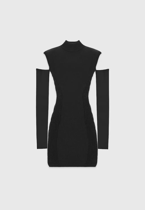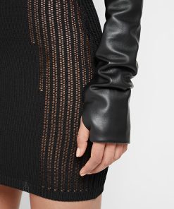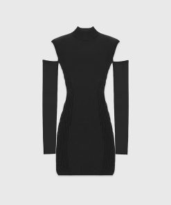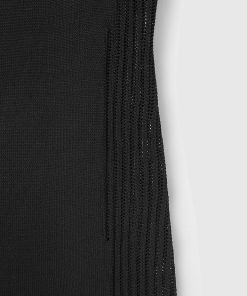 In our classic stretch yarn fabric, this dress features open and tight knit techniques for textural contrast and contouring.